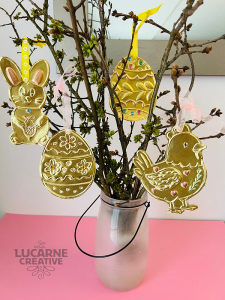 Rejoins nous chez Simone et les Kids pour découvrir la technique d’estampage manuel ou métal repoussé, qui consiste à travailler des feuilles métalliques pour faire émerger des motifs en relief. À l’aide d’outils simples, vous donnerez forme à un motif sur le thème de Pâques : poule, lapin, oeufs …